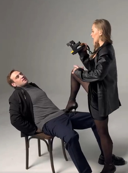 Юлия Пересильд, известная по главной роли в кинофильме «Вызов», вызвала бурные обсуждения, опубликовав провокационное фотоснимки в социальных сетях. В кадре она позирует в стильном черном ансамбле, состоящем из куртки и мини-платья, дополняя образ колготками. Рядом с ней, в довольно необычной позе, находится Михаил Тройник.