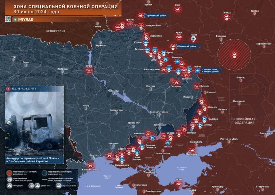 Новая карта боевых действий на Украине в зоне СВО по состоянию на 01.07.2024