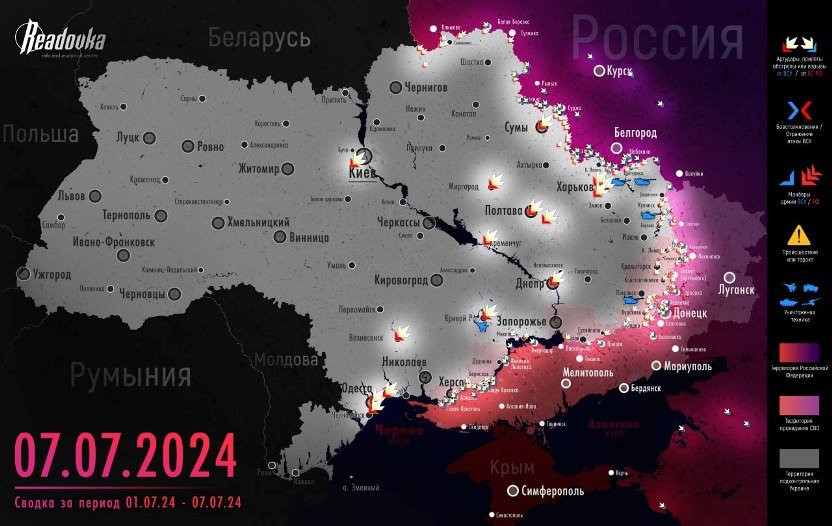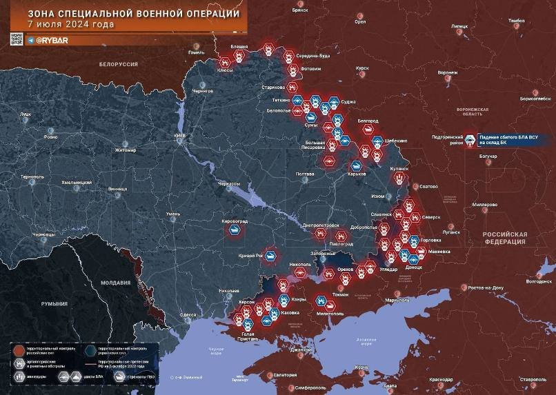 Карта боевых действий на Украине в зоне СВО по состоянию на 08.07.2024