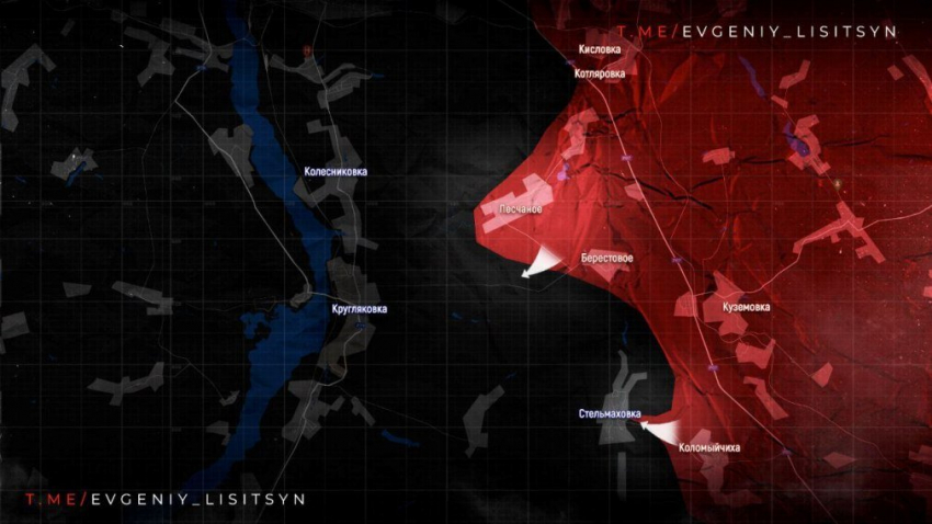 На Купянском направлении российская армия продвинулась в районах Стельмаховки и Песчаного в направлении реки Оскол на Купянском направлении. Судя по всему, наши бойцы стремятся окружить группировки ВСУ, удерживающие позиции в районе этих населенных пунктов.