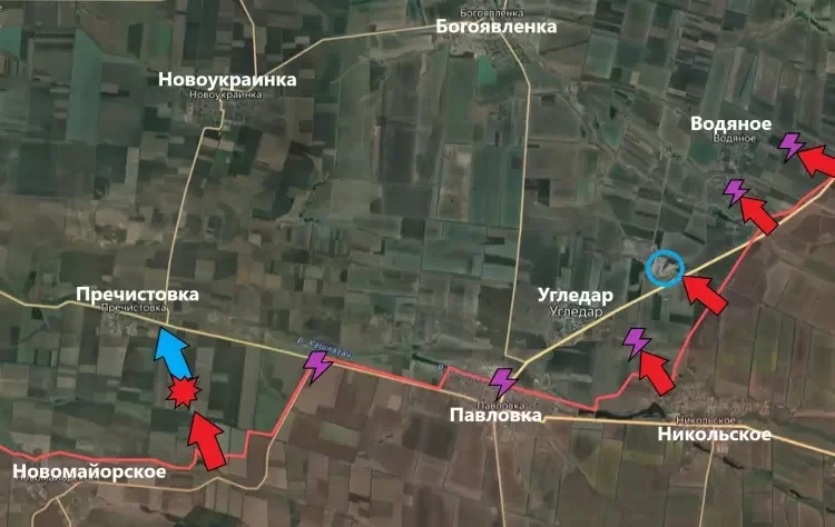 На Угледарском направлении штурмовые группы ВС РФ постепенно берут в полу-охват Водяное, последний крупный оборонительный узел противника, прикрывающий северные подступы к Угледару.