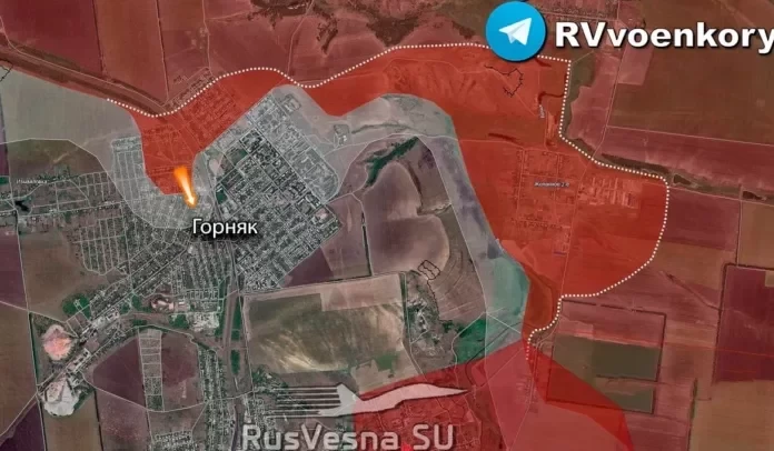 В северной части Горняка российские войска продвинулись вдоль ряда улиц на участке шириной до 950 м. на глубину до 600 м.