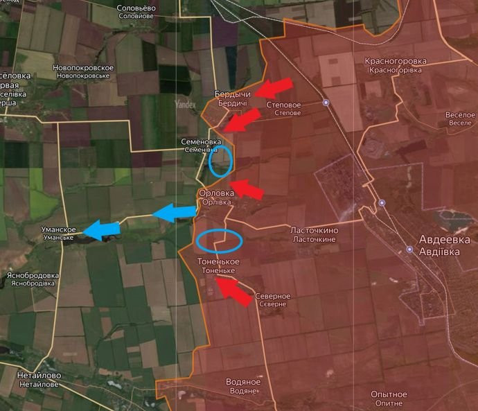Обновлённая карта боевых действий на Украине по данным на 12:00 мск сегодня, 01.03.2024
