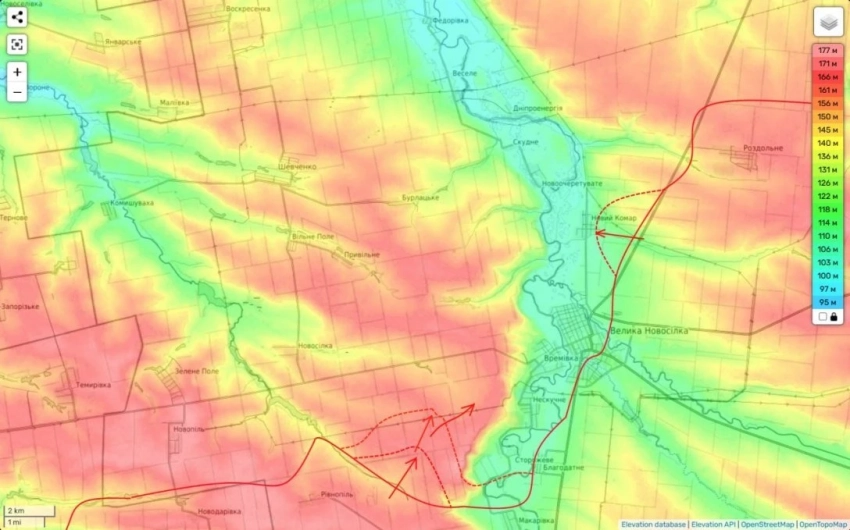 И одновременно с этим наши части южнее реки Волчья, со стороны села Сухие Ялы начали движение в сторону н.п. Зелёное. Смысл маневра очевиден.