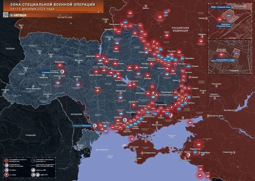 Новая карта боевых действий в зоне СВО на Украине от 16 декабря 2024 года