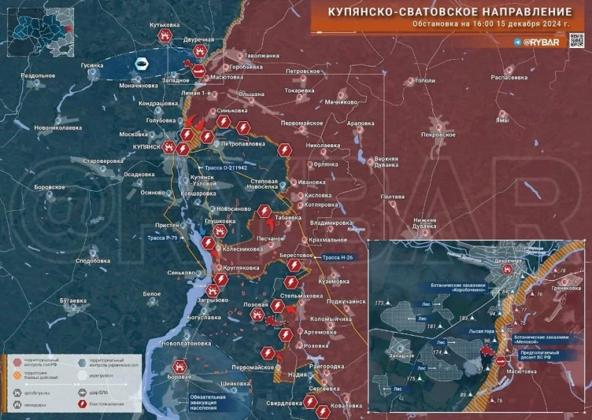 Главная » Эксклюзив » Свежая карта боевых действий на Украине: обстановка на фронтах СВО на 16.12.2024
