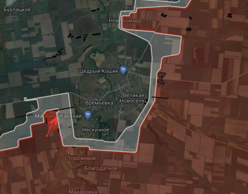 ВС РФ расширили контроль территории западнее Волково на глубину до 800 м., в Солёном на глубину до 600 м. и в районе Новоелизаветовки на участке шириной до 1.42 км на глубину до 650 м.