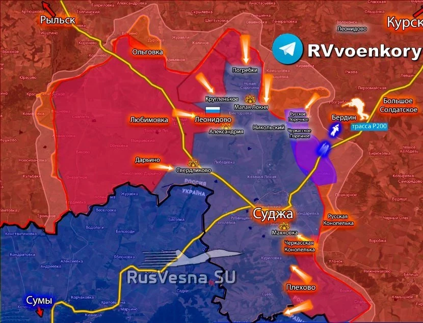 В свою очередь Telegram-канал "Операция Z: Военкоры Русской Весны" следующим образом описывает свежие события на курском фронте: