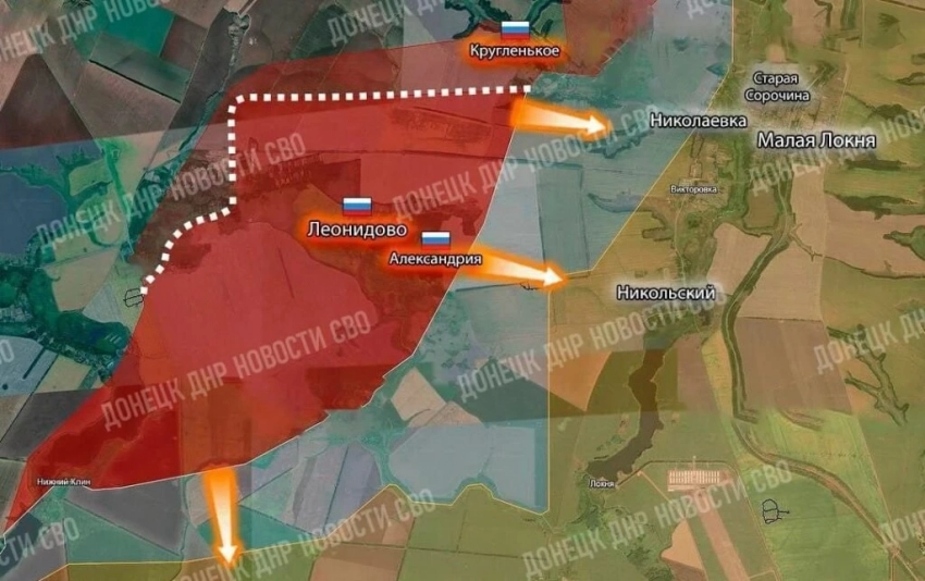 Главное направление наступления наших войск - с запада оккупированного района от Новоивановки через Леонидово и Александрию к трассе Суджа-Льгов. Наступление идет широким фронтом, от Погребков до Никольского. В некоторых местах ВС РФ уже перешли реку Малая Локня.
