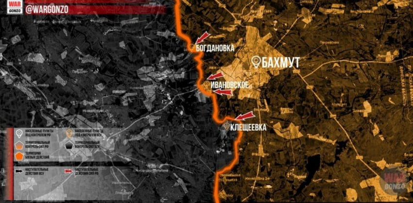 На Артёмовском направлении российские войска продолжают попытки выбить ВСУ с западной оконечности населённого пункта, а так =же ведут наступательные действия в Клещеевки и Богдановки. Линия боевого соприкосновения не изменилась, пишет Wargonzo.