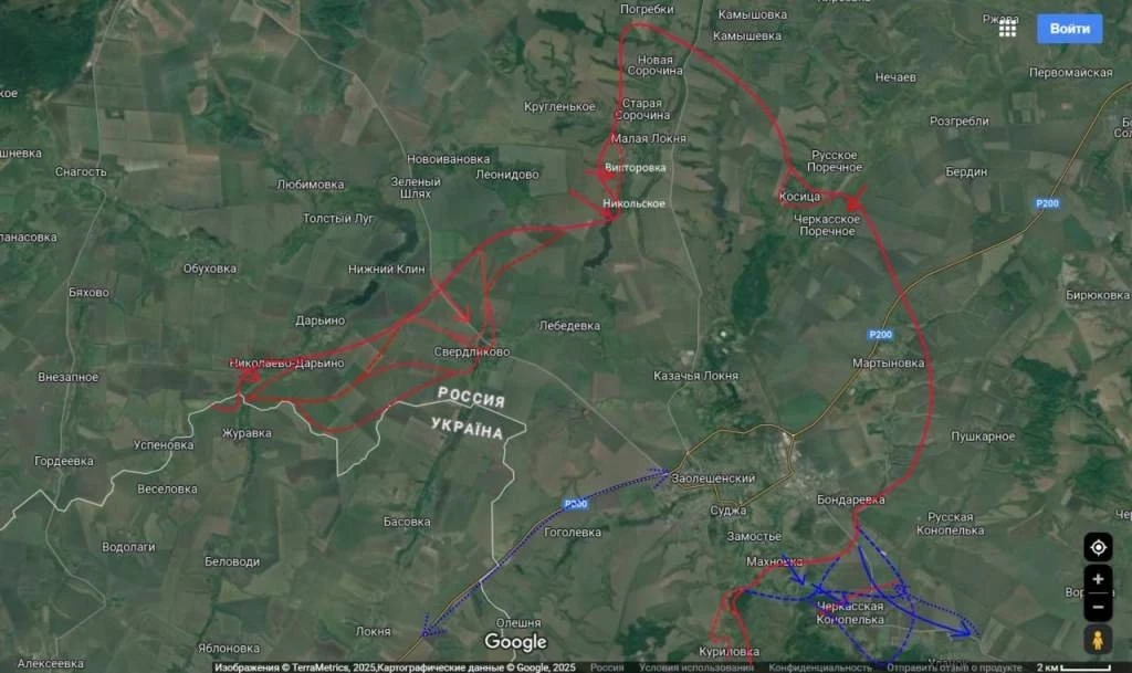 В то же время авиация и артиллерия атаковали живую силу и технику противника в районах населенных пунктов Викторовка, 1-й Княжий, Колмаков, Косица, Кругленькое, Локня, Махновка, Мирный, Николаевка, Новая Сорочина, Черкасское Поречное. Также нанесены удары по позициям ВСУ в шести населенных пунктах Сумской области Украины.