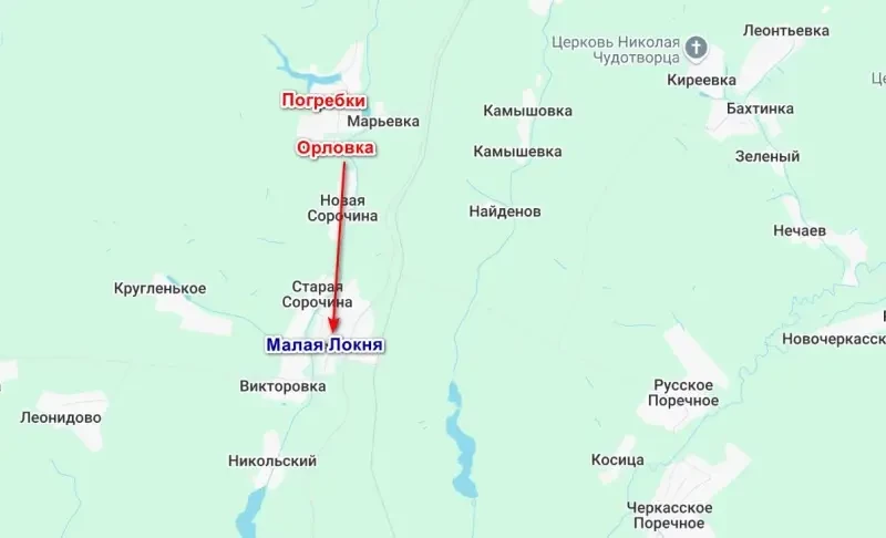 Об освобождении российскими войсками Погребков и Орловки сообщалось накануне вечером, штурмовки из состава 34-й отдельной гвардейской мотострелковой бригады подняли российский флаг над школой в Погребках, а затем с ходу освободили и Орловку. Удерживающие эти населенные пункты подразделения из состава «элитной» 95-й десантно-штурмовой бригады ВСУ откатились аж до Малой Локни.