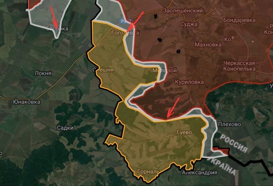 Продолжаются интенсивные боестолкновения, ВСУ перебросили резервы и заняли господствующие высоты, что замедлило продвижение российских войск на линии Журавка- Басовка-Гоголевка-Гуево.
