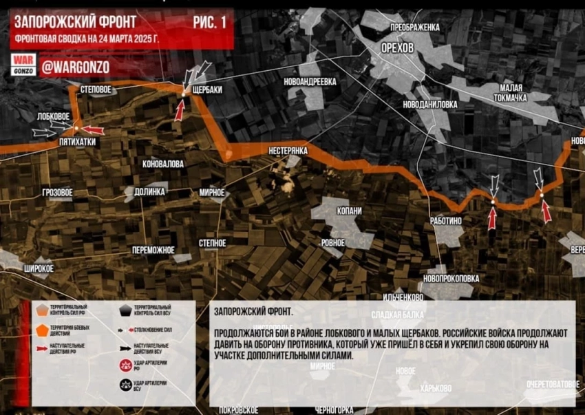 Обновлённая карта боевых действий на Украине в зоне СВО по состоянию на сегодня, 24.03.2025