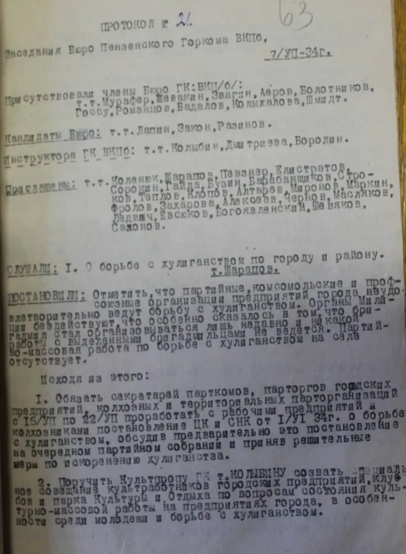 Год 1934. Какие вопросы Пензенским горкомом ВКП(б) обсуждались тогда?