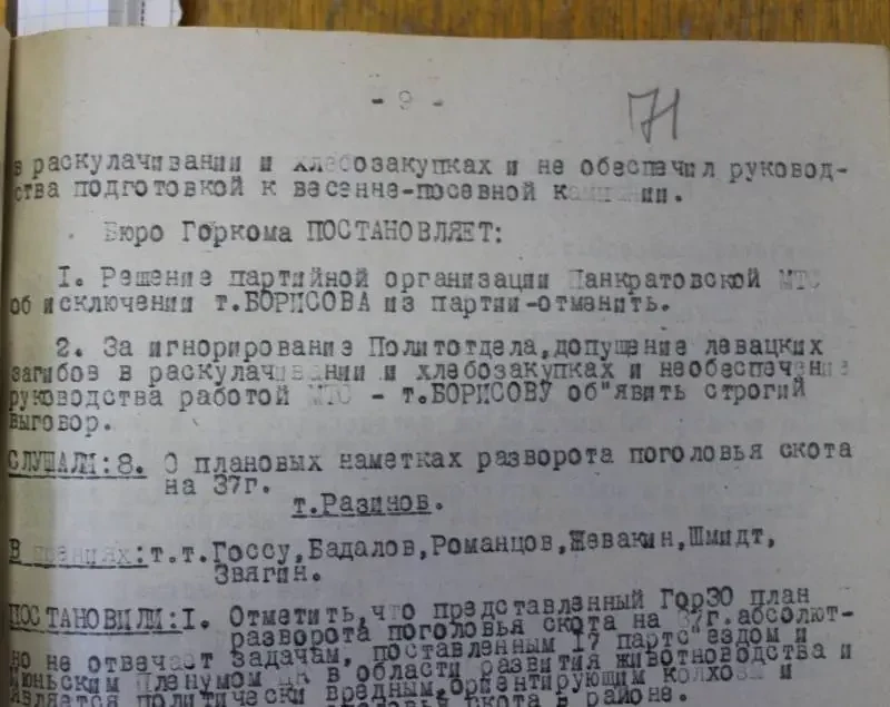 Интересно, что в документах 1934 года (в газетах «Правда» и «Рабочая Пенза») термины «вредитель» и «вредительство» еще не употреблялись. Писали о «классово чуждых», «потере партийного чутья», «разложенцах» и «левацких загибах». Но вредители еще не появились. Но вот что интересно, какие такие именно «левацкие загибы» мог допустить начальник МТС? Выяснить по документам этого не удалось.