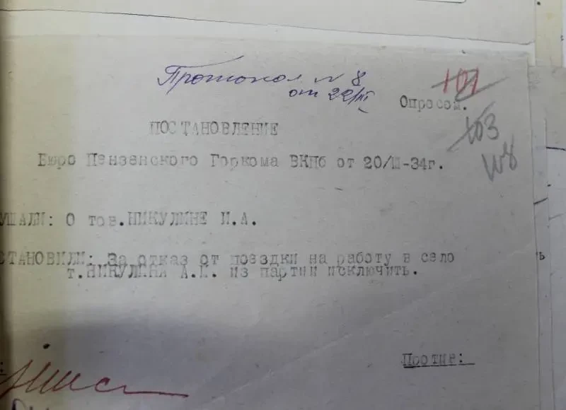 История и документы. Сегодня мы продолжаем знакомиться с документами из партийного архива Пензенской области. На этот раз перед нами пройдут фотокопии документов за 1934 год. Этот год вполне можно назвать «Годом съезда победителей». Потому что именно такое название неофициально получил XVII съезд ВКП(б). Поскольку все документы в этой папке свалены в одну кучу, будем смотреть все подряд, а не только те, что касаются проведенной коллективизации. Тут главное — получить впечатление о том времени, когда работал Пензенский горком.