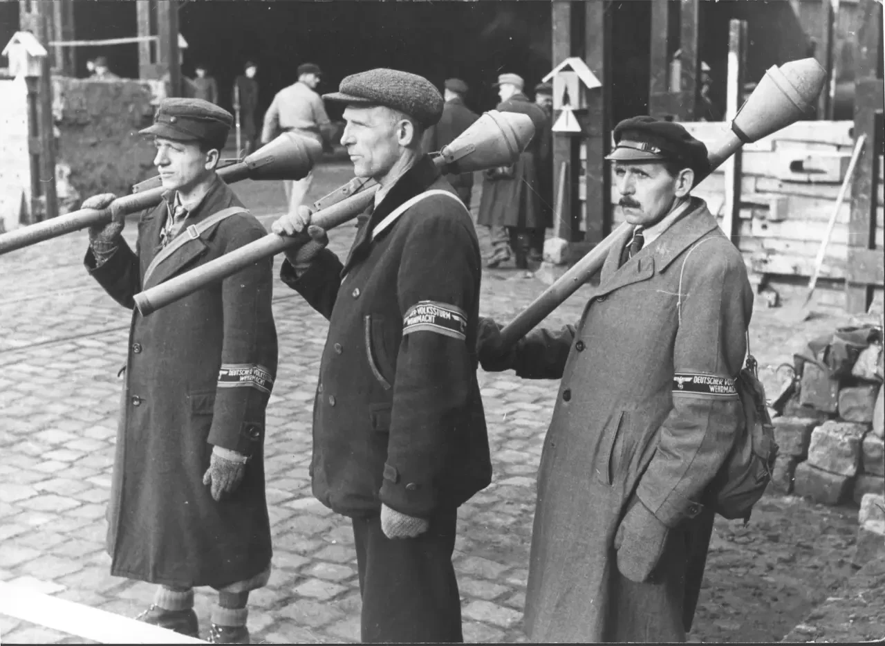 Когда летом 1944-го войска антигитлеровской коалиции приблизились к границам Рейха, национал-социалистический режим стал предпринимать все усилия, чтобы оттянуть неминуемый конец. Все хоть как-то способные держать оружие мужчины должны были быть призваны в фольксштурм. Эти плохо обученные и столь же плохо вооруженные формирования оказались на пути сильного и опытного противника.