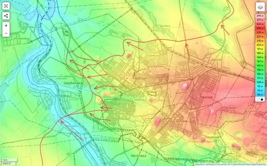 На Торецком направлении вчера кадры объективного контроля подтвердили выход наших передовых частей северо-западнее Торецка (вдоль дороги на Иванополье).