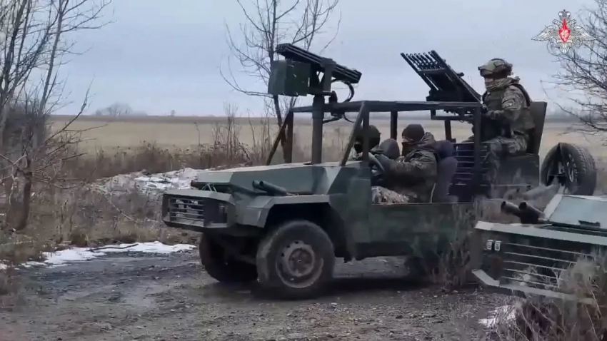 Боевая машина-багги для перехвата БПЛА. На борту имеются стрелковые установки с гладкоствольными ружьями и автоматами. Фото Минобороны РФ