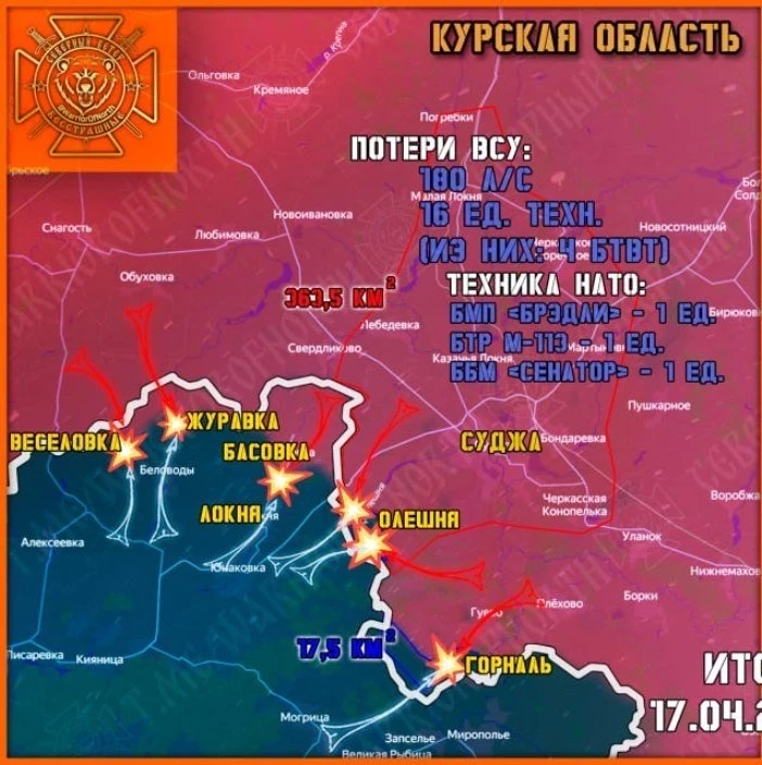 Главная » Эксклюзив » В Курской области ожесточённые бои продолжаются у Олешни и Горналя: свежие данные на 18.04.2025