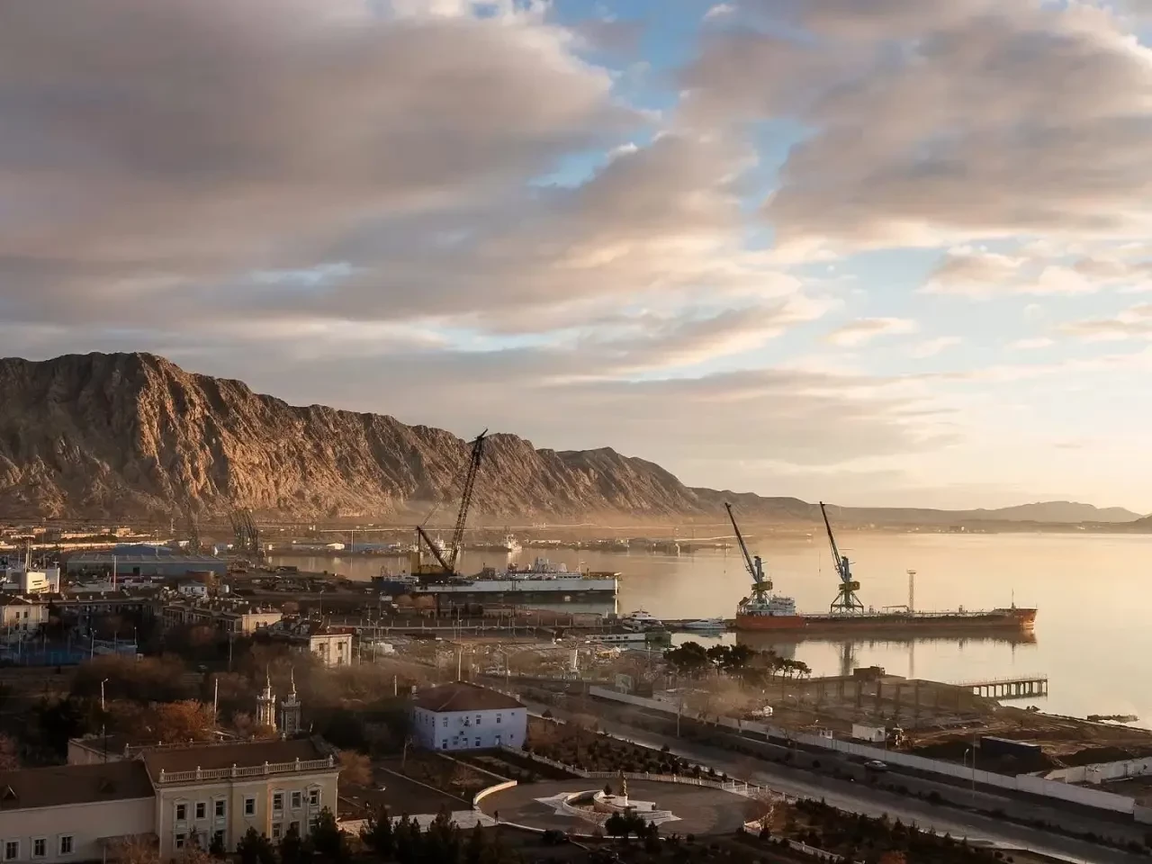 Современный вид портовой зоны Туркменбаши. В 2013-2018 годах порт был реконструирован и уже мало чем напоминает тот порт, который был в военные годы