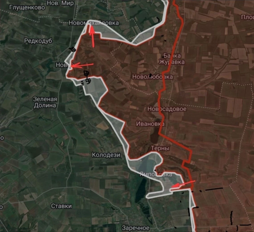 При этом единой зоны оккупации у противника не осталось даже на этом небольшом участке курского приграничья. Российские войска осуществили разрезание гарнизона ВСУ в районе села Горналь, и теперь для транспортной коммуникации противнику между этими участками необходимо действовать через территорию Сумской области. Однако там число атак со стороны ВС РФ в последнее время в значительной степени возросло. Одно из направлений атак - логистический узел ВСУ Мирополье.