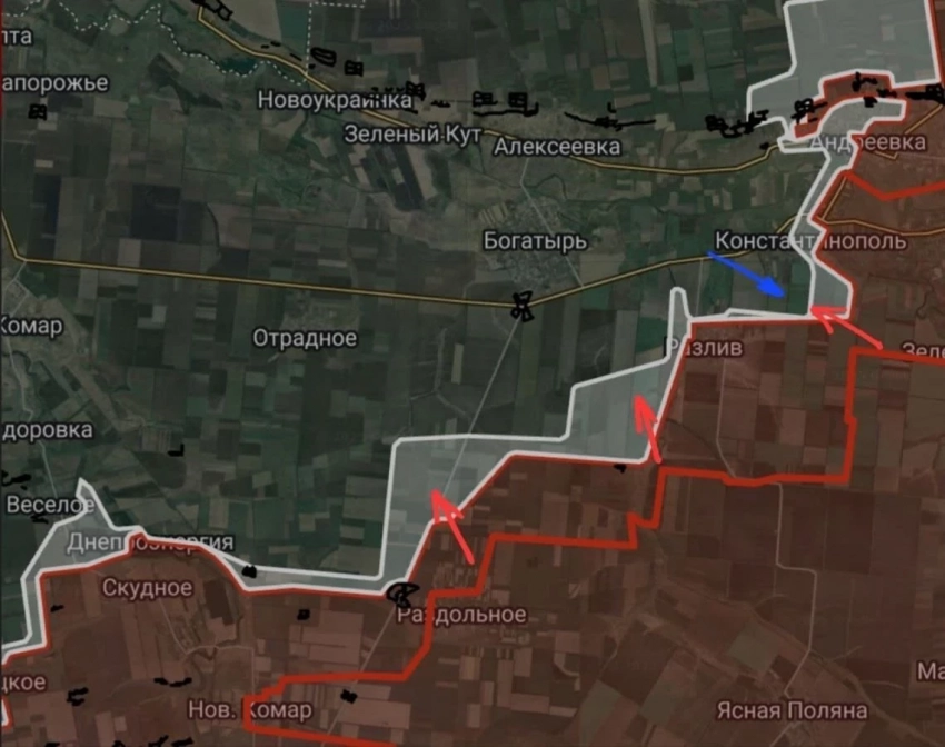 На Днепропетровском направлении севернее Андреевки ВС России продвигаются на участке шириной до 2.8 км на глубину до 1.15 км. Идут бои в направлении Котляровки и в Успеновке.