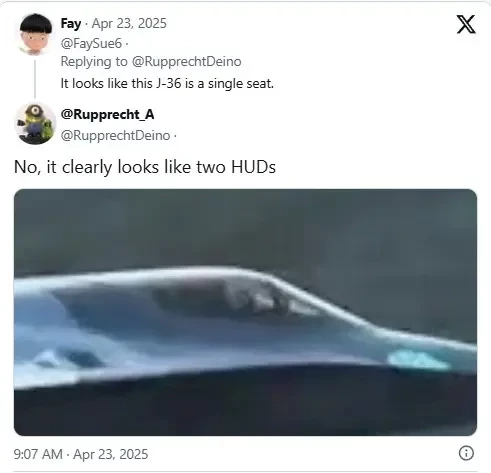 Видео с J-36 также позволяет по-новому взглянуть на кабину пилота. С тех пор как самолёт впервые появился на публике, ходили слухи, что у него может быть двухместная кабина с сиденьями, расположенными рядом, как у Су-34. Однако на одном из свежих фото отчетливо видны два больших дисплея, расположенные друг за другом, что снимает все вопросы о количестве и расположении экипажа в кабине.