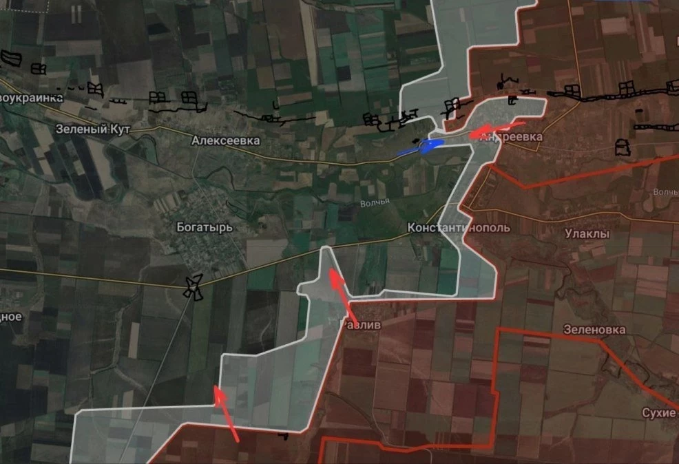 На Богатырско-Комаровском направлении ВС РФ давят на окраинах Алексеевки, продолжаются встречные бои. Северо-западнее Разлива российские войска ведут штурмовые действия в направлении Богатыря, отмечаются локальные боестолкновения южнее упомянутого населённого пункта.