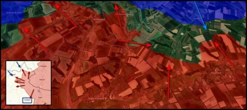 Южнее Покровска ВС России штурмуют Новоалександровку, решая задачу продвижения к Днепропетровской области, сообщает Telegram-канал "Два майора".