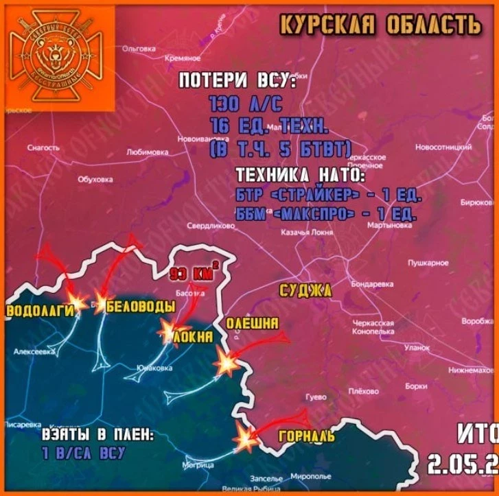 Главная » Эксклюзив » ВС РФ на Курском направлении успешно наступают в районе Олешни: свежие данные на 03.05.2025