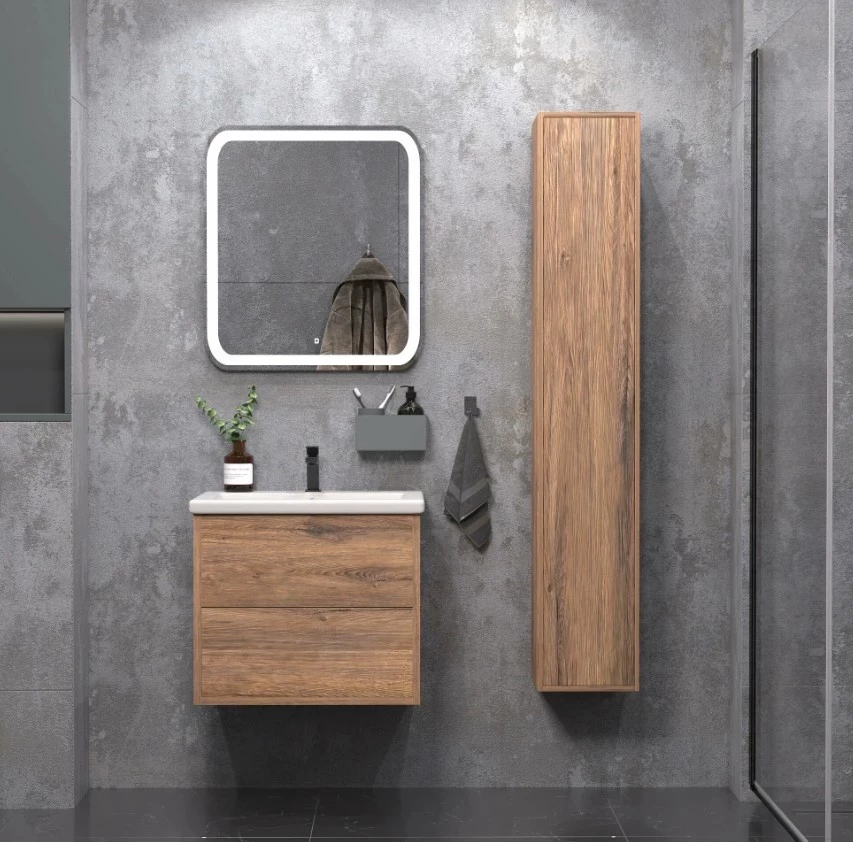 Шкаф-пенал подвесной SanStar Siva для ванной комнаты Дуб веллингтон табак