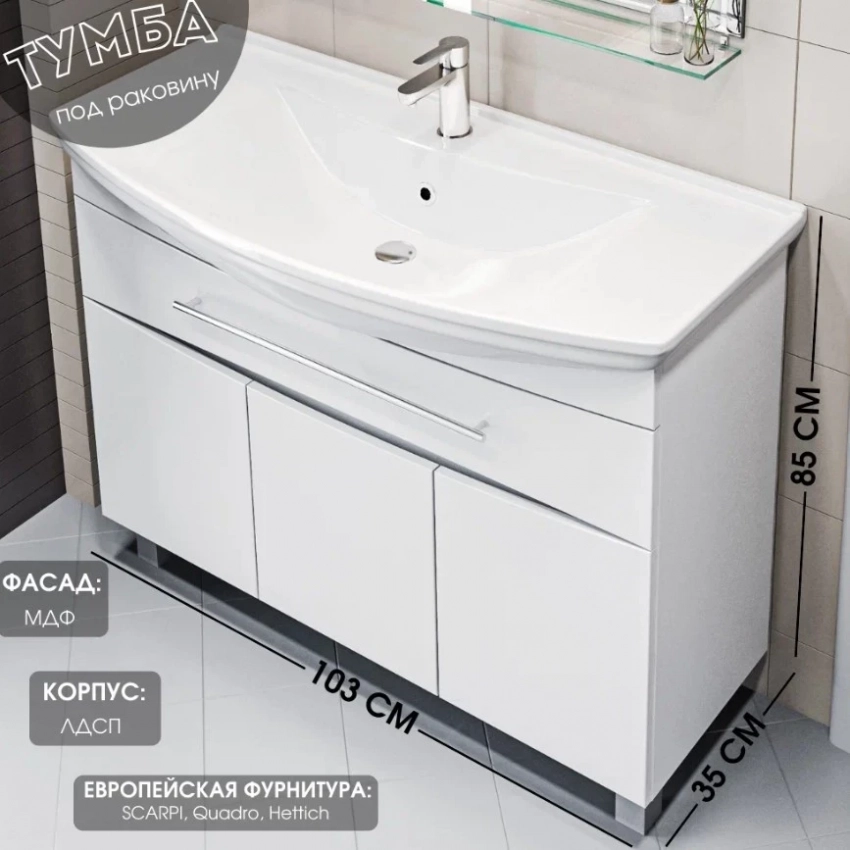 • Влагостойкие материалы (ЛДСП и МДФ Soft-touch)