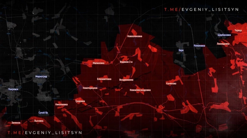 Развивается наступление Армии России на Покровском направлении. Враг опасается постоянных атак на Новоэкономическое со стороны Миролюбовки - просматривается задумка наших по охвату Мирнограда с востока и севера. Юго-западнее Покровска ВС России продолжают движение к границам Днепропетровской области: бои в районе Новоалександровки, Удачного, Котлино.