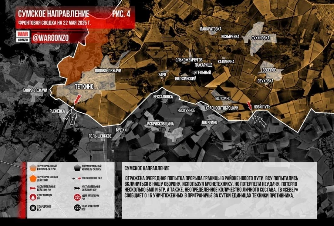Главная » Эксклюзив » ВСУ пытались прорваться к Новому Пути в Курской области: свежие данные о боях в приграничье на 22.05.2025