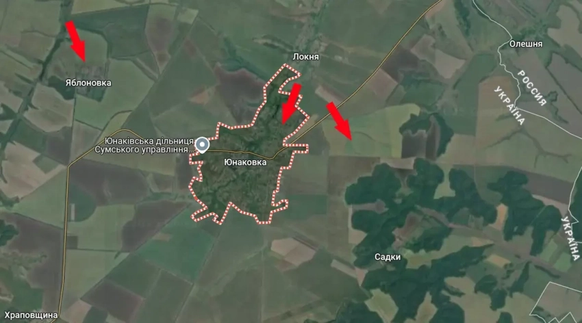 Главная » Эксклюзив » Российские войска вышли южнее дороги Н-07, ведущей на Сумы, окончательно лишив Юнаковку статуса транспортно-логистического узла для ВСУ