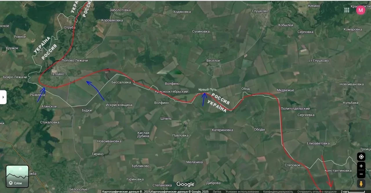 Он добавил, что даже в случае временной потери контроля над Тёткино российским войскам не следует поддаваться на провокации противника. Вместо этого необходимо продолжать давление севернее и восточнее Сум, чтобы вынудить ВСУ и их командование, включая "просрочку" и генерала Сырского, потерять стратегическую инициативу.
