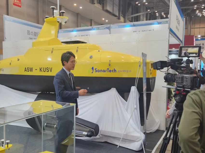 В конце мая в южнокорейском г. Пусан состоялась военно-техническая выставка MADEX-2025. На этом мероприятии компания SonarTech впервые показала свою новую разработку — безэкипажный катер противолодочного назначения. Пока его демонстрируют под обозначением ASW-USV (Anti-Submarine Warfare — Unmanned Surface Vessel), которое указывает на класс и предполагаемые задачи.