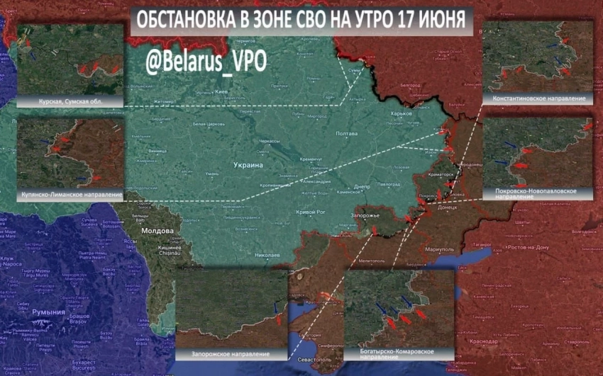 Вооружённые силы Российской Федерации продолжают наращивать наступательные усилия на многих участках в зоне СВО. В частности, ожесточённые бои ведутся на Покровском, Константиновском, Купянском и Сумском направлениях. Свежие новости и карта боёв - в материале N4k от 17 июня.