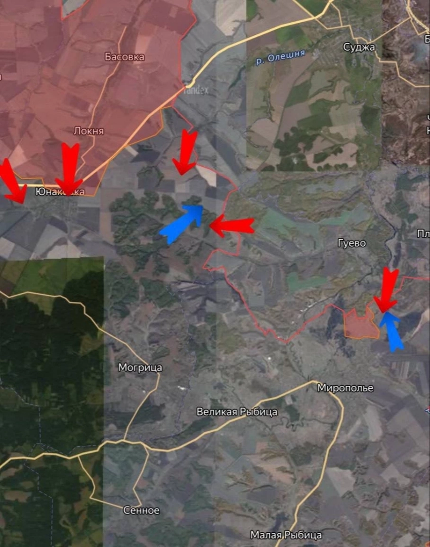 На Сумском направлении наши бойцы продолжают бить врага в Юнаковке. Продвинулись в направлении центра села, а также берут под контроль западную часть снабжающей дороги со стороны Яблоновки. В районе Садков идёт выбивание врага из лесных массивов, которые под контролем противника. Ситуация осложняется большим количеством укрепленных укрытий, сообщает Telegram-канал «Дневник Десантника». В районе Александрии также идёт борьба по выбиванию врага из села, наши войска пока продвинулись на границе и зачистили лесную зону.