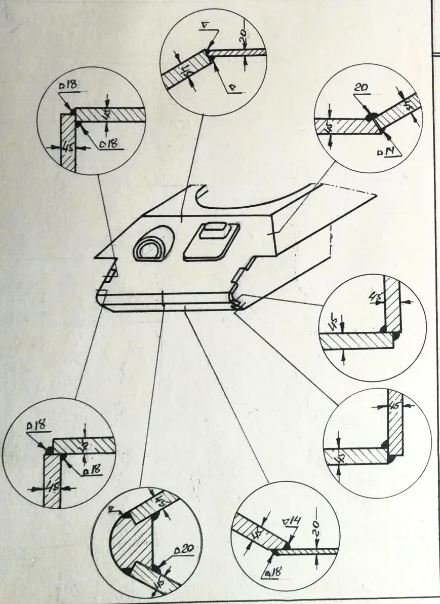 14. Соединение нижней кормовой детали с днищем;