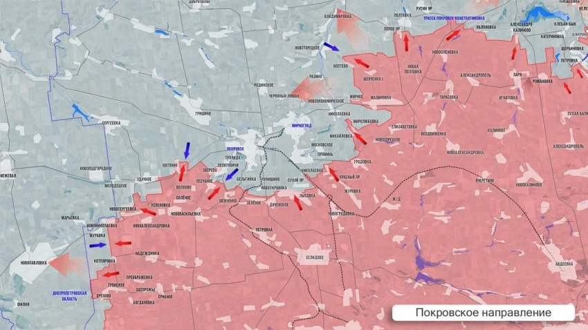 На Покровском направлении ВС РФ продавливают оборону ВСУ в лесополосах западнее Котляровки и Орехово. В Муравке тяжёлые бои, инициатива на стороне наших войск. Со стороны Новосергеевки ВС РФ стараются выйти к Молодецкому. В Удачном, Котлино и Зверево идут упорные сражения. На восточном фланге сообщают об успехах ВС РФ севернее Новоэкономического. Наши штурмовики форсировали р. Казённый Торец на нескольких участках и ведут бои в Разино, на подступах к Фёдоровке и Новоторецкому.