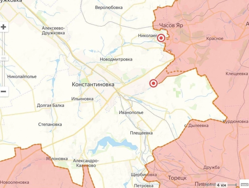 На Часовярском направлении армия России создаёт оперативный «мешок» для ВСУ. Российская артиллерия и РСЗО уже накрывают значительную часть дорог вглубь украинской обороны, что осложняет врагу снабжение гарнизона в Часов Яре. В городе противник, судя по оперативным данным, оттеснен к западным окраинам, но тяжёлые бои продолжаются.