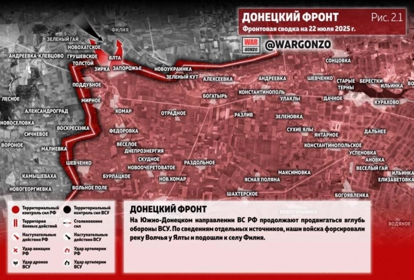 Карта боевых действий на Украине на 22.07.2025