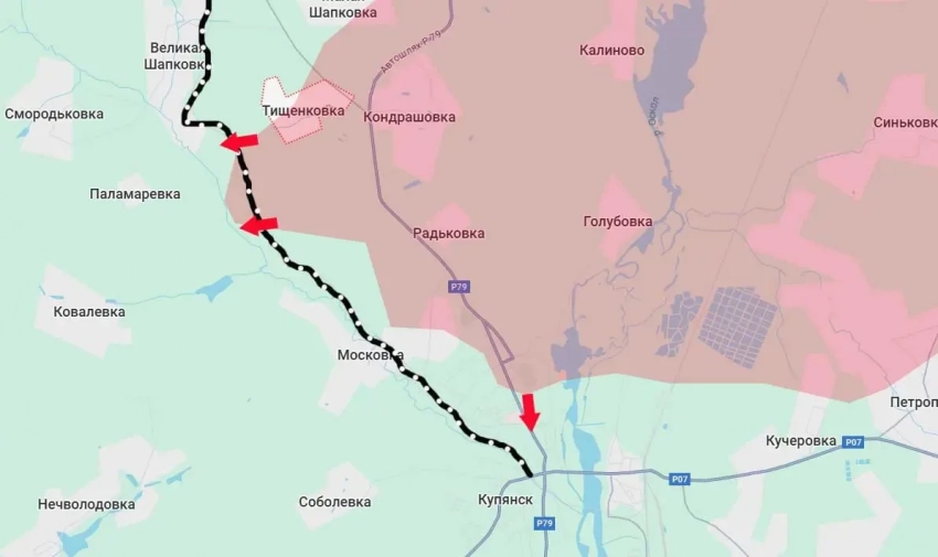 Российские войска перевели под свой контроль новый участок территории на Купянском направлении. В результате успешных действий армия России перевела под свой контроль участок железной дороги в районе Тищенковки и Шапковки, что к северо-западу от Купянска. Южнее станции Снежная ВС РФ вышли к небольшой реке Купянка.