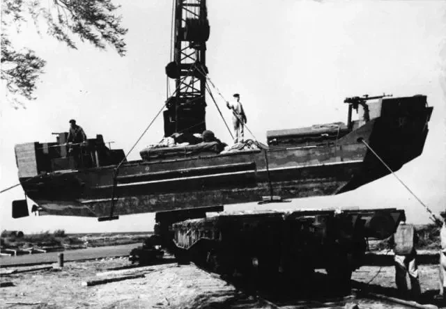 Модульная конструкция позволяла перевозить баржи железнодорожным и автомобильным транспортом в разобранном виде, а повторная сборка занимала всего лишь 6-8 часов. Уже через 24-30 часов после прибытия корабль был готов к боевому применению.