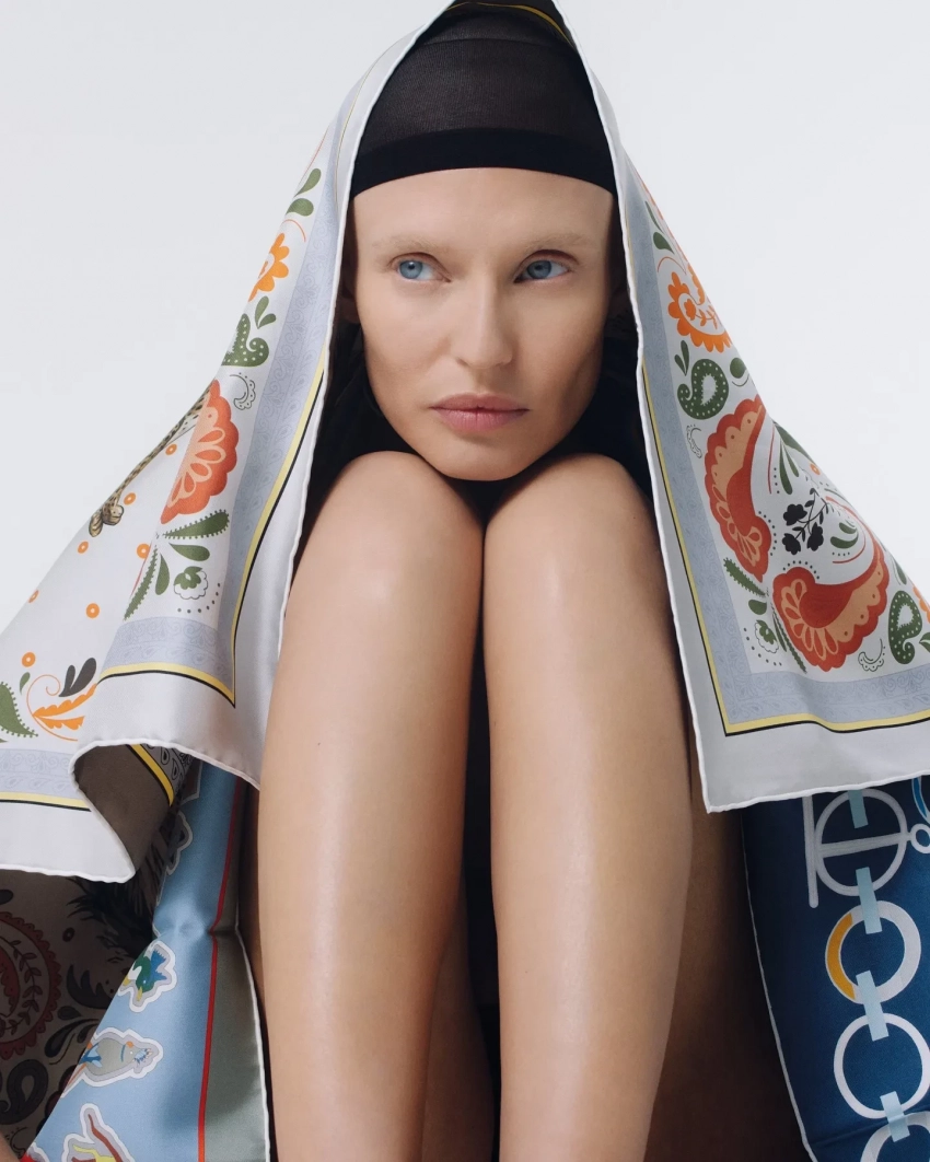 На новых снимках 40-летняя модель позирует в объективе фотографа Зои Натали Манеллы. Модель предстала в ярких образах и с осветлёнными бровями.