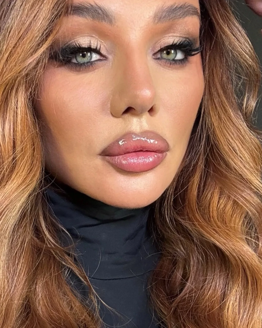 На снимках певица позирует в чёрном джемпере с высоким воротом, дополнив образ ярким макияжем и причёской с кудрями.