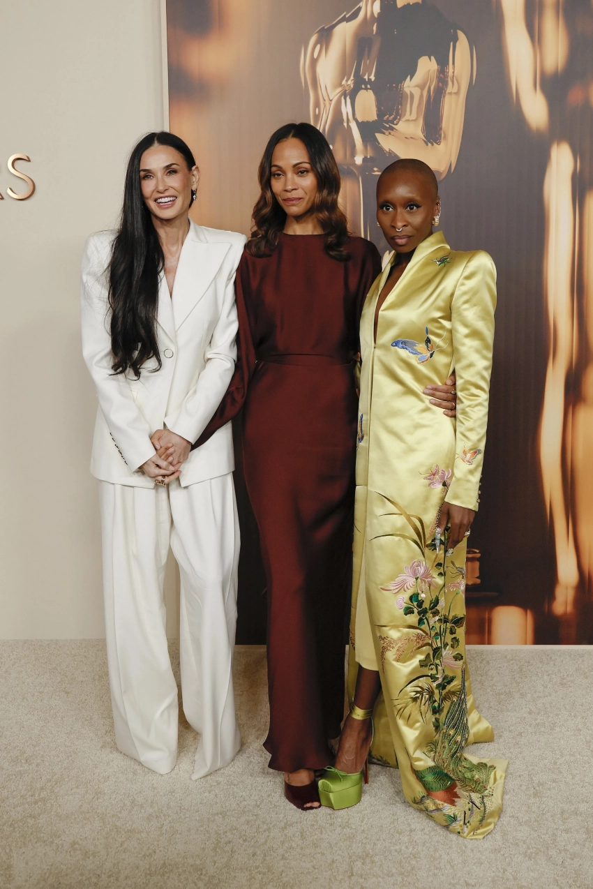 Деми Мур, Зои Салдана, Синтия Эриво/Фото: Frazer Harrison/Getty ImagesНа мероприятие пригласили около 200 номинантов этого года. Все они сделали традиционное совместное фото перед ужином. Сама церемония награждения премии "Оскар" пройдёт 3 марта в Лос-Анджелесе.